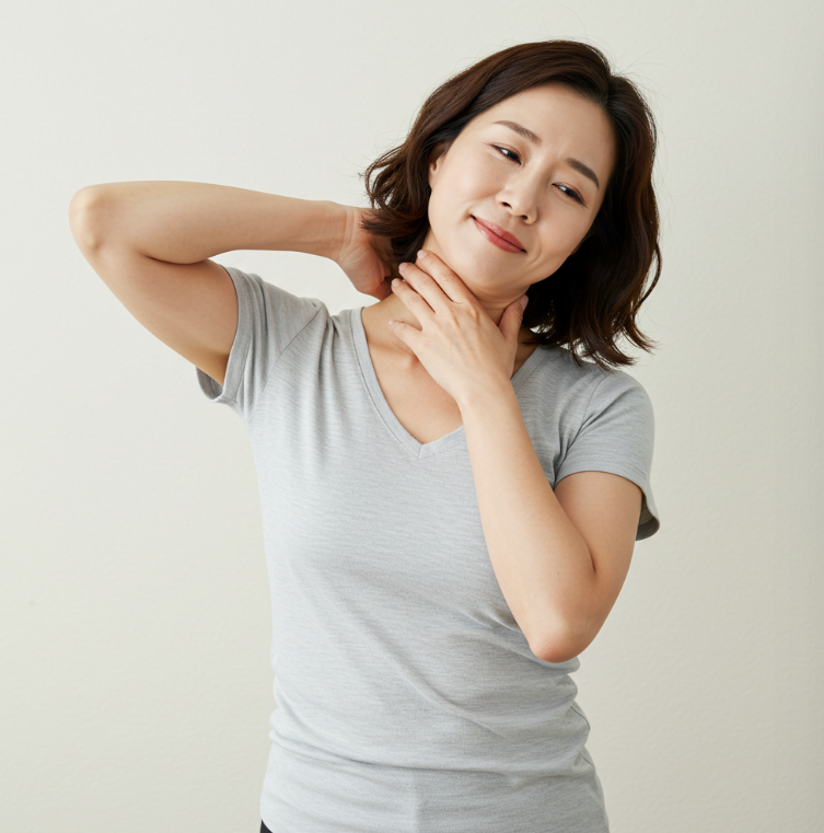 목 옆쪽 근육을 이완해 뻣뻣함을 줄이고 유연성을 높이는 동작입니다.