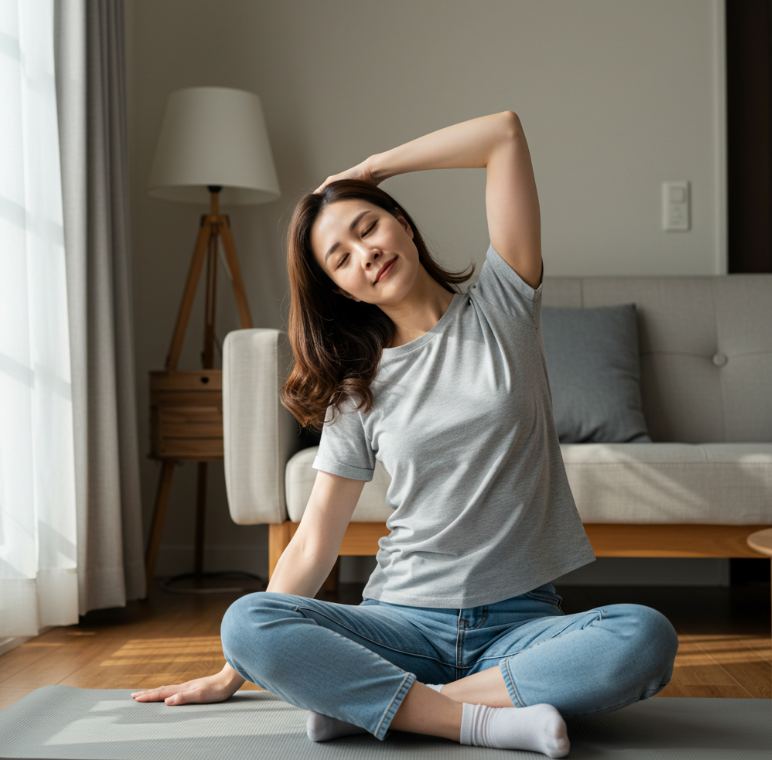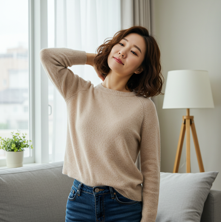 - 규칙적으로 실천하세요: 하루 5~10분, 틈틈이 스트레칭을 하면 근육 경직을 예방하고 뻐근함을 줄일 수 있습니다.